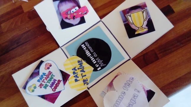 Création d'une boite a surprise pour la fête des papas!! j'ai proposé cette activité aux 2 petites de 7 et 5ans et 2 de mes enfants 9 et 4ans